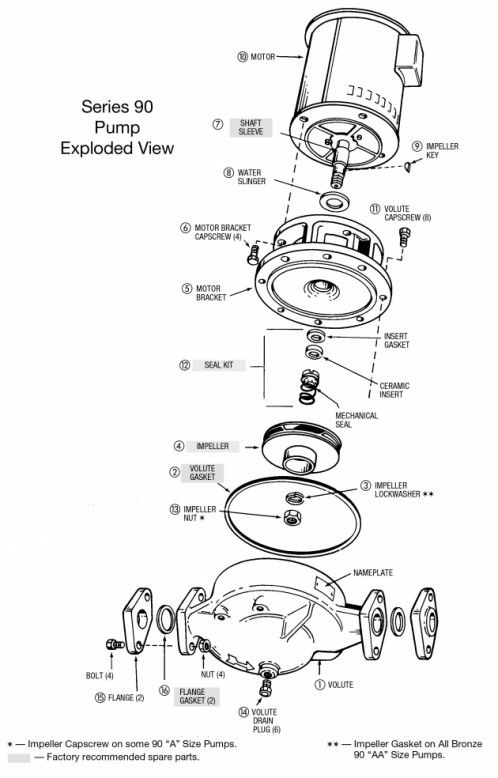 Bell & Gossett Model Be9006T, Series e-90, Size 1.25AAB 5.25 AB, All Bronze Pump 1-1/4″ Flg, 1/2HP 1725RPM 208-230/460v 3Ph, 179344LF