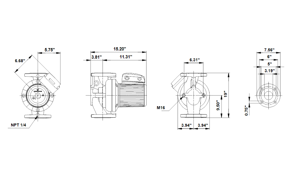 Grundfos VersaFlo UPS 80-160 F Cast Iron 2-Speed Circulator Pump, 575V at 60 Hz, 3 PH, 3 hp