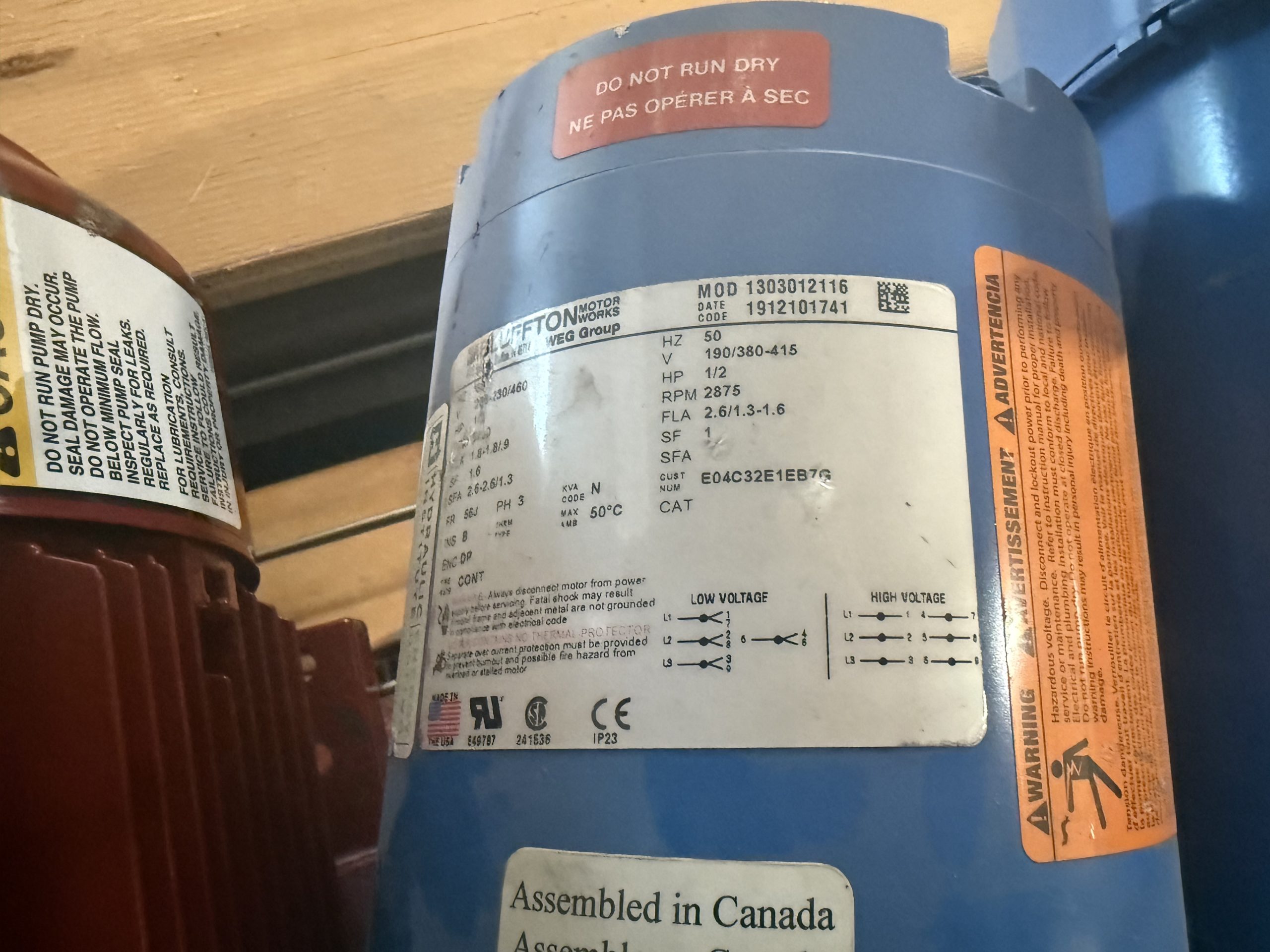 E04C32E1EB7G, 1/2 HP Pump Motor, Three Phase, 1/2 3/50/60/208-230-460 2P DP