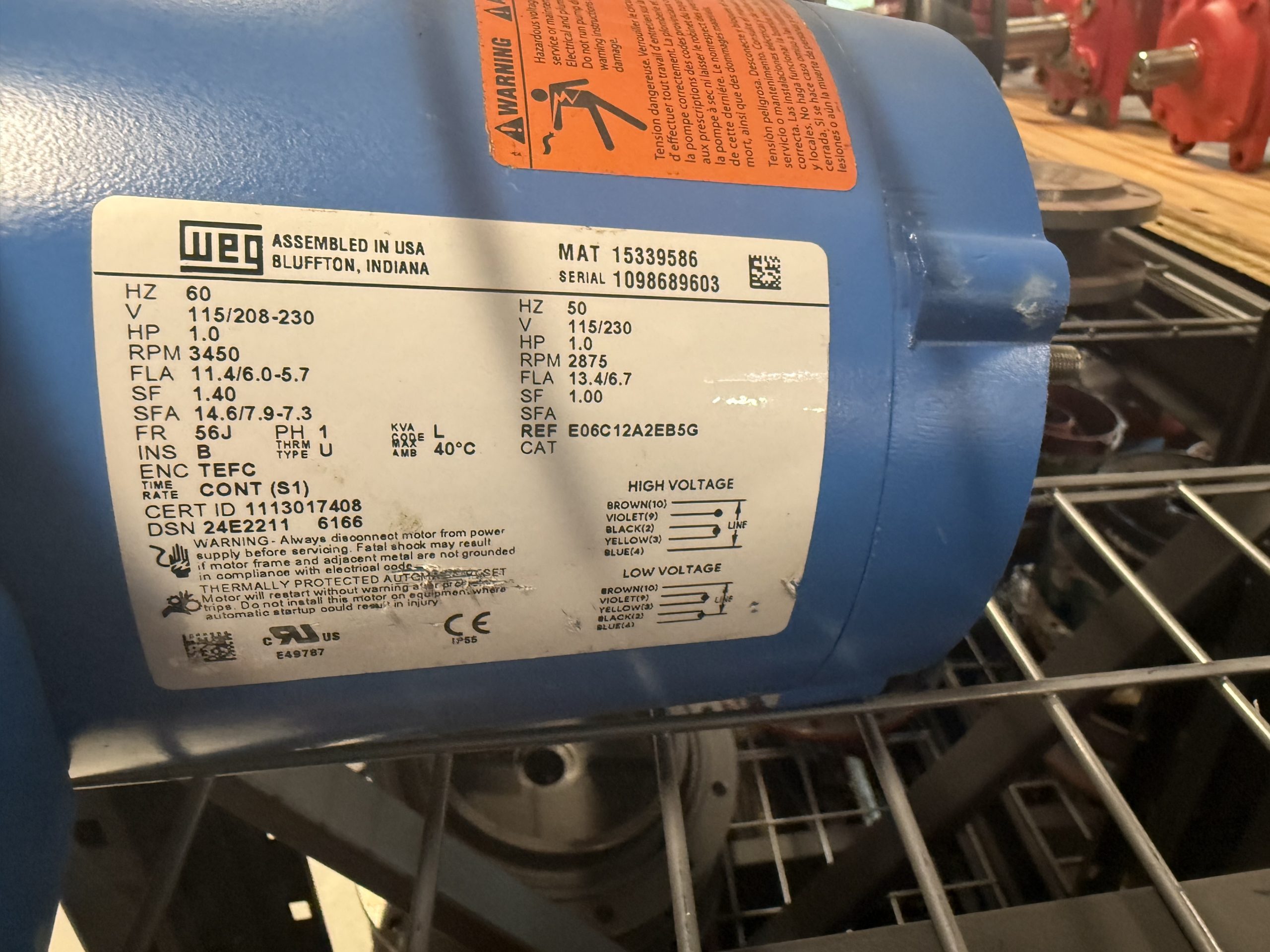 HZ: 60 V: 115/208-230 HP: 1 RPM: 3600 ENC: TEFC FR: 56J